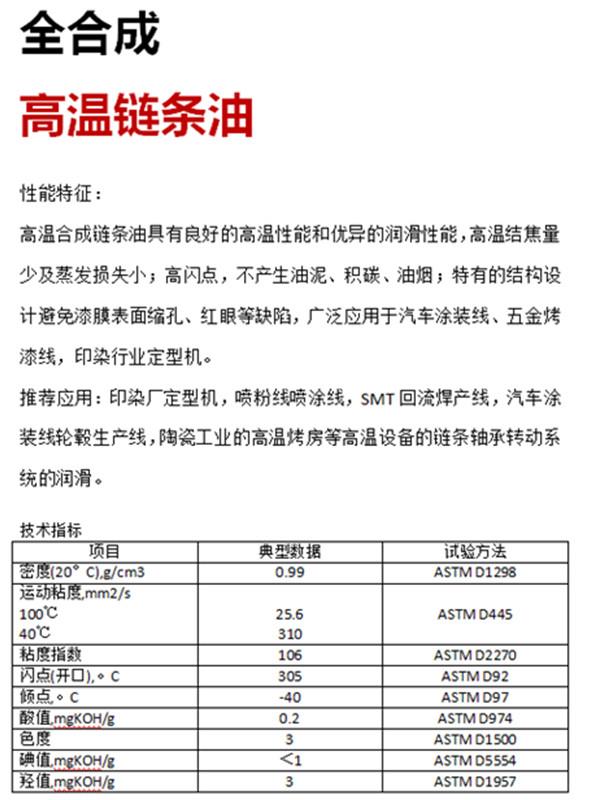 廈門威馬工貿(mào)有限公司位于美麗的花園城市-廈門市同安區(qū),公司專營(yíng)合成高溫油脂系列產(chǎn)品。產(chǎn)品分為:高溫鏈條油、高溫潤(rùn)滑脂、高低溫潤(rùn)滑脂等系列油品。廣泛應(yīng)用于:定型機(jī)、噴涂/噴粉、巖棉等高溫潤(rùn)滑設(shè)備,本品無(wú)煙,無(wú)殘?jiān)瑢儆谌铣筛邷赜拖盗?,可寄樣試用,長(zhǎng)期服務(wù)全國(guó)客戶。